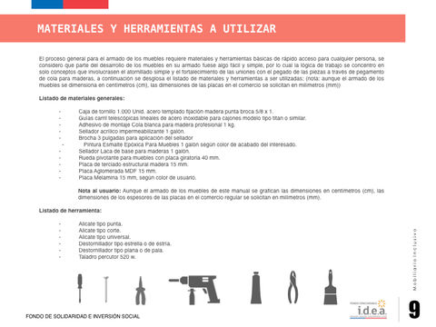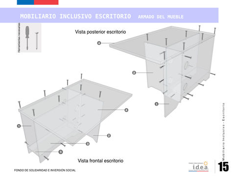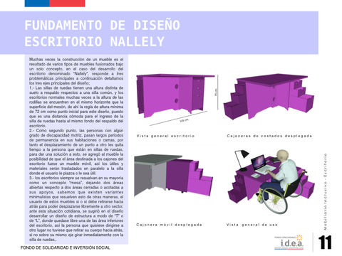 El encargo consistió en el diseño completo del manual para Mobiliarios Inclusivos, la idea era obtener un material didáctico, que explicase bien de donde nace los muebles y como funcionan también.A su vez se debía exponer el armado de estos, obteniendo una herramienta que servirá para poder reproducir este tipo de muebles como de soluciones.